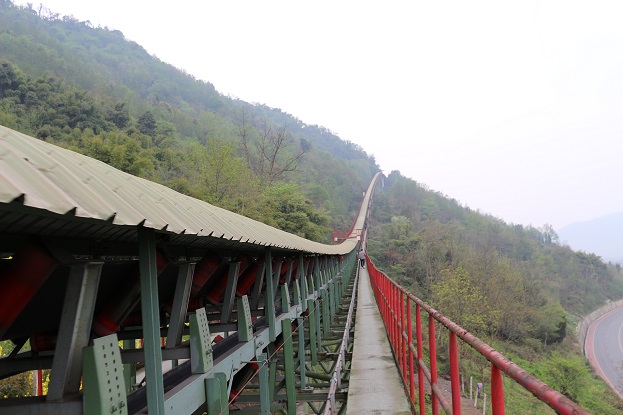 經亞東水泥采掘二組陳主任對游走皮帶的相關事項進行詳細講解并配發手套、飲水后,同仁們分成兩組由亞泥同事帶隊出發。12:10,歷經兩個半小時的游覽后,全體同仁勝利到達終點,前往農家樂休歇。總投資人民幣3億元,歷時2年興建的長皮帶工程,于2009年3月正式投入營運。皮帶全長12.6km,由皮帶廊道、轉站、倉棚等組成,主要采用高架橋方式,基礎型式為獨立基礎,最高距地落差近百米。