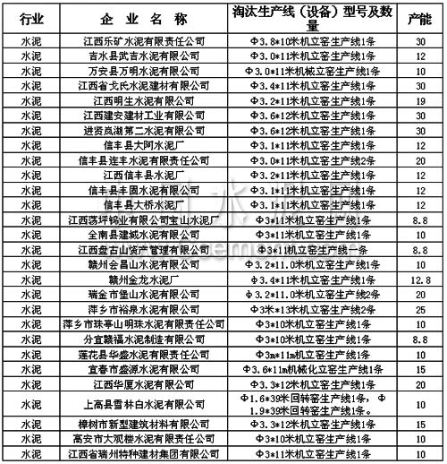 近日,江西省根據(jù)國家工業(yè)和信息化部《關(guān)于下達(dá)2013年19個(gè)工業(yè)行業(yè)淘汰落后產(chǎn)能目標(biāo)任務(wù)的通知》要求,公布了該省2013年工業(yè)行業(yè)淘汰落后產(chǎn)能目標(biāo)任務(wù)企業(yè)名,共涉及11個(gè)行業(yè)89家企業(yè),其中包括28家水泥行業(yè),淘汰落后水泥產(chǎn)能433.2萬噸。
